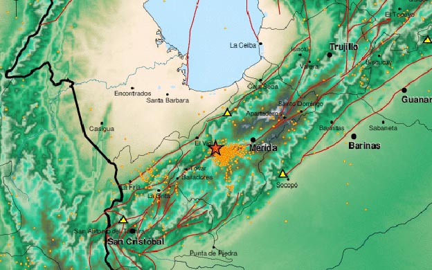 En Mérida, el movimiento telúrico, de magnitud 2,5 en la escala de Richter, se registró a las 10:00 de la mañana de este sábado, a 22 kilómetros al suroeste de El Vigía, con una profundidad de 6,8 kilómetros.