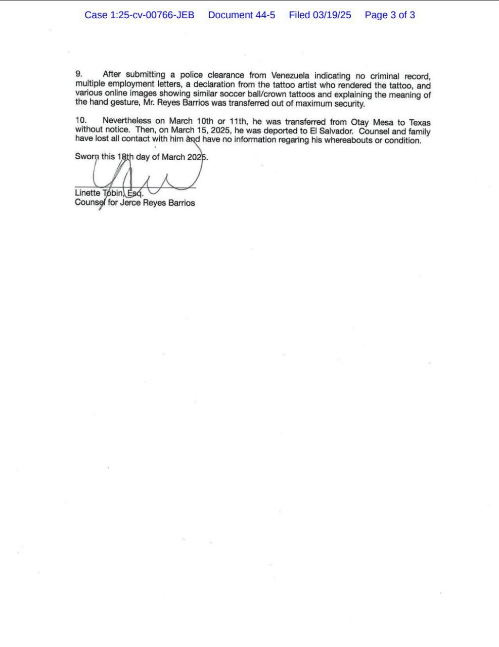 Su abogado no constató dónde estaba durante tres días, hasta el 18 de marzo, cuando confirmaron con un oficial de ICE que estaba encarcelado en El Salvador.