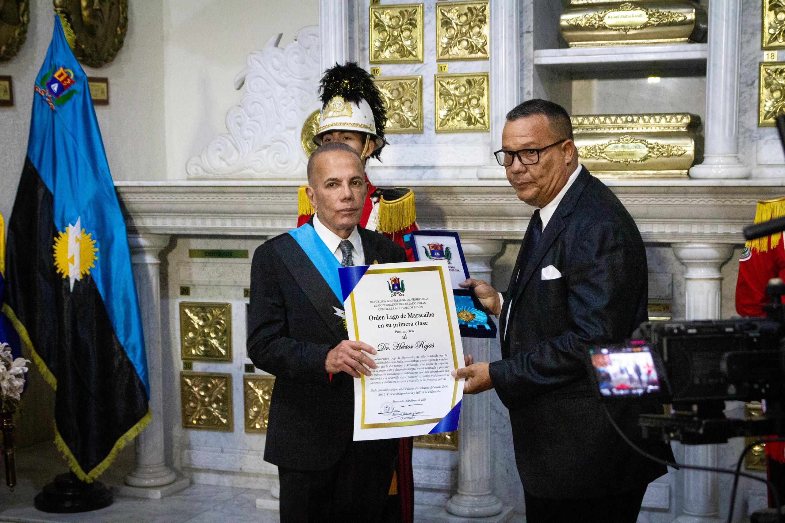 En un emotivo acto de homenaje y reconocimiento, el gobernador Manuel Rosales Guerrero, lideró este sábado 8 de febrero, el traslado de los restos mortales del destacado astrofísico zuliano, Dr. Héctor Rojas, al Panteón Regional, a la par que le fue conferida la Orden Lago de Maracaibo, Post Morten.