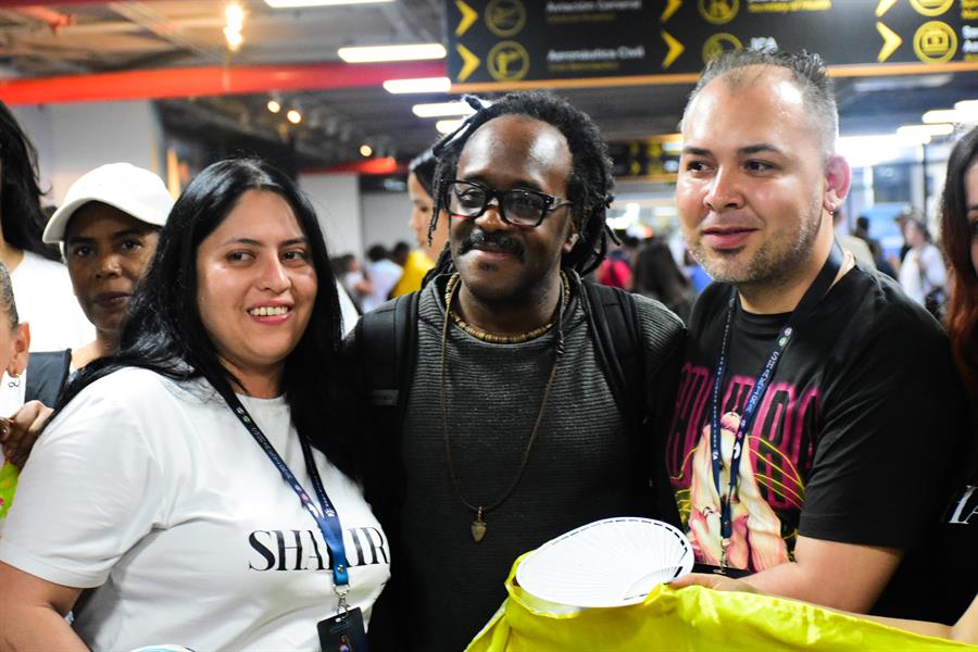 Pese a que la barranquillera no estuvo en la bienvenida que le tenían preparada, sus seguidores recibieron a miembros de su equipo, entre ellos el productor y pianista Albert Meléndez, el baterista Brendan Buckley y las bailarinas Darina Littleton y Liz Dany Campo Díaz.