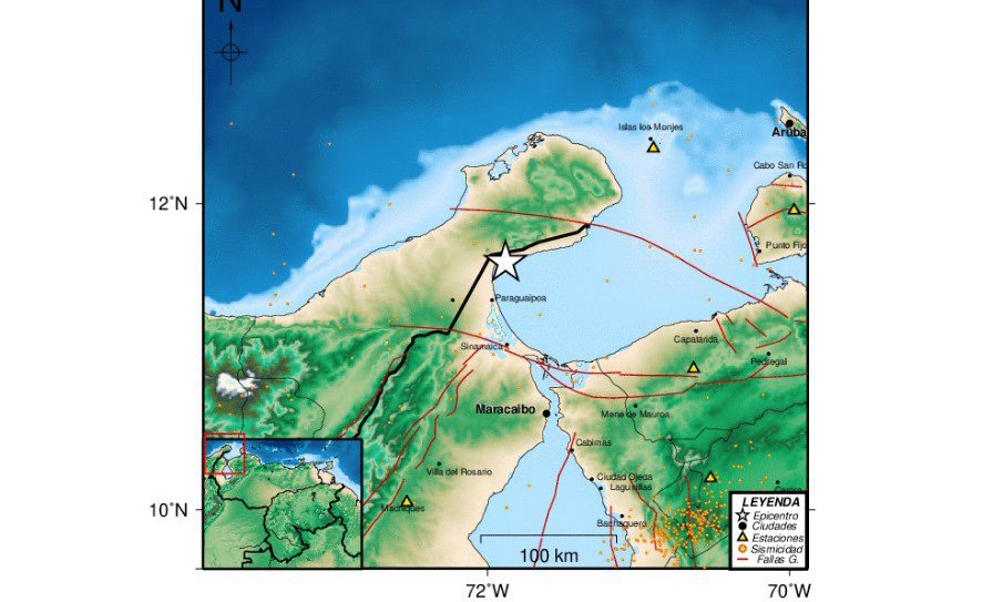 El movimiento telúrico tuvo su epicentro a 26 kilómetros al norte de Macuro (10.909° N, -61.887° O), con una profundidad de 24.9 kilómetros.