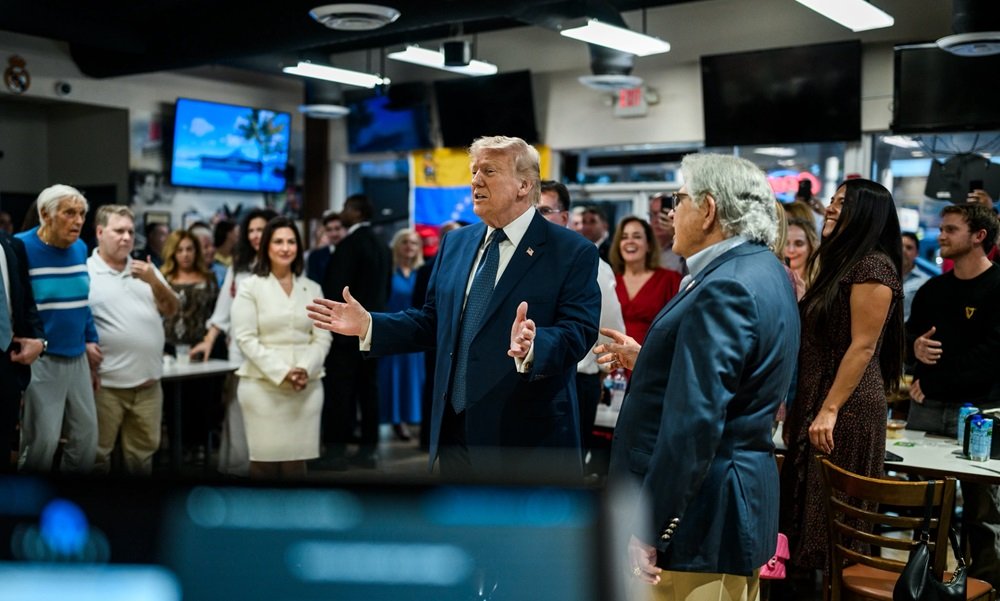 El presidente de Estados Unidos, Donald Trump, se despidió de Florida este lunes 9 de marzo visitando el icónico restaurante venezolano El Arepazo, donde compartió brevemente con los dueños del establecimiento y un grupo de exiliados.