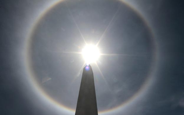 El anillo que rodeaba este lunes al sol pudo verse desde distintos puntos de la ciudad. Dependiendo la ubicación se podían apreciar los colores del arcoíris. A través de las redes sociales los usuarios colgaron fotografías del fenómeno que por minutos cautivo a más de un marabino