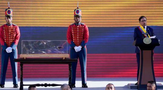 La ceremonia de investidura de Gustavo Petro como primer gobernante de izquierda de Colombia tuvo una pausa inesperada por cuenta de una espada cargada de simbolismo y que terminó sembrando discordia entre el gobierno entrante y el saliente.