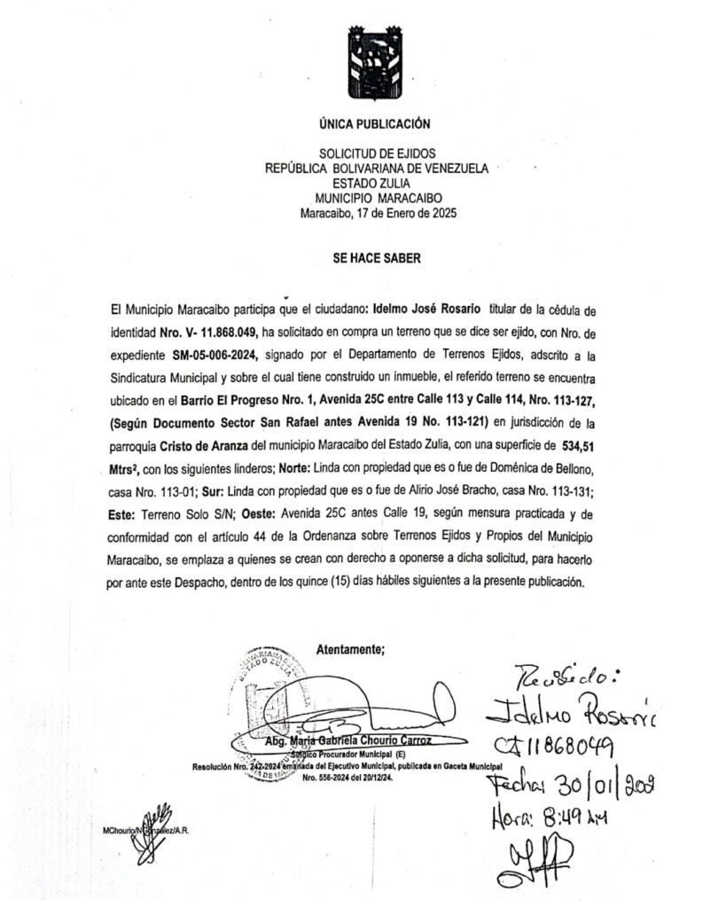 Única Publicación Solicitud de Ejidos Expediente SM-05-006-2024