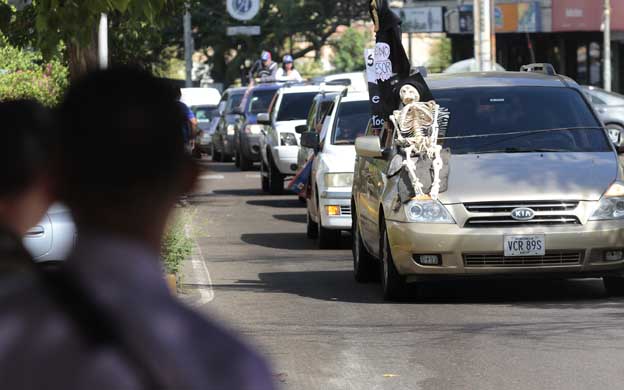 Las consignas de respeto a los derechos laborales y políticos se mantienen en las voces de los trabajadores despedidos del Servicio Nacional Integrado de Administración Aduanera y Tributaria (Seniat). Durante la mañana de ayer continuaron con sus acciones de protesta y se sumaron a una caravana respaldados por la comunidad universitaria en Maracaibo.