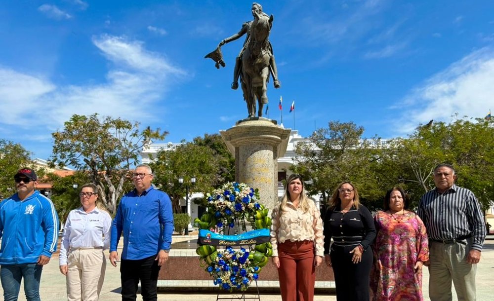 Al finalizar la ceremonia religiosa, las autoridades y el profesorado se trasladaron a la Plaza Bolívar. En este espacio histórico, realizaron la tradicional ofrenda floral ante la estatua de El Libertador.
