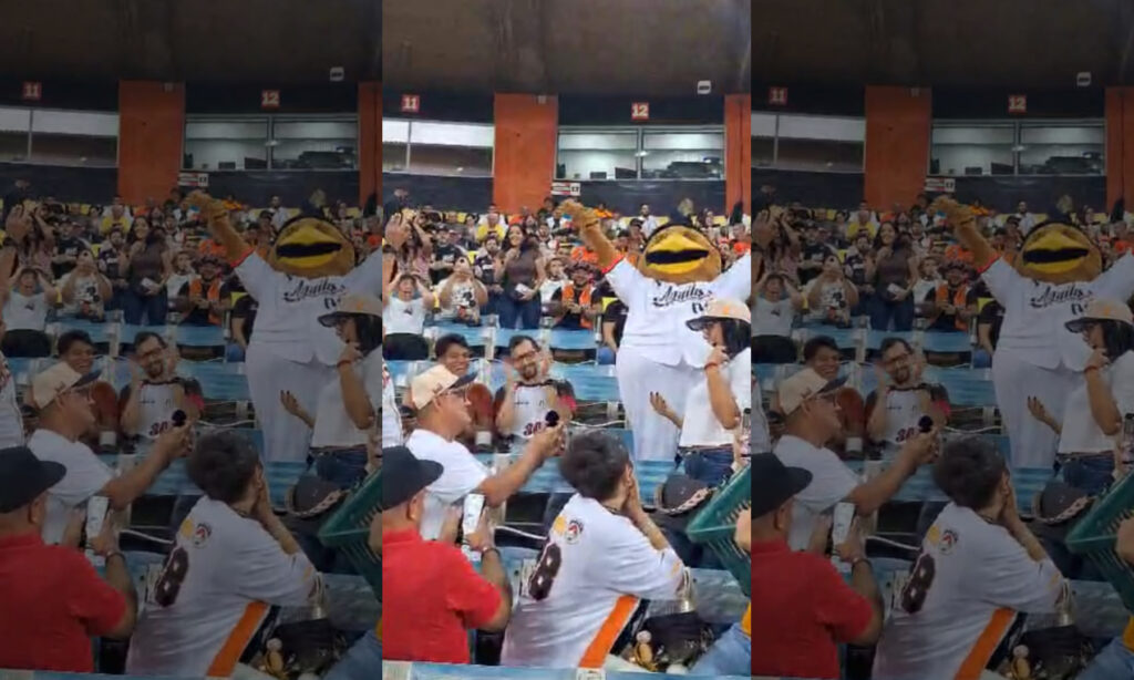 Un curioso y particular video, de esos que dan de qué hablar en redes sociales, se viralizó la noche de este miércoles 12 de noviembre. En el audiovisual, un zuliano cuyo nombre sería Freddy le pidió matrimonio a su pareja en pleno partido de las Águilas del Zulia contra los Tigres de Aragua, en el estadio Luis Aparicio “El Grande” de Maracaibo.